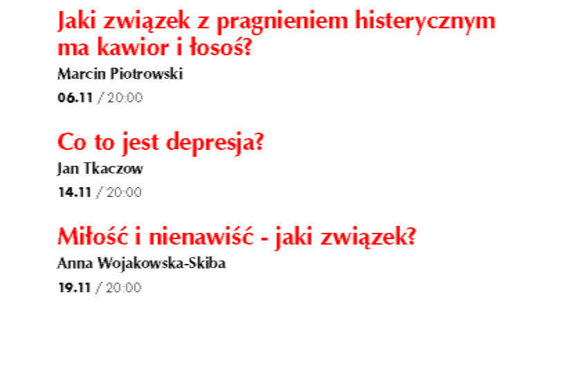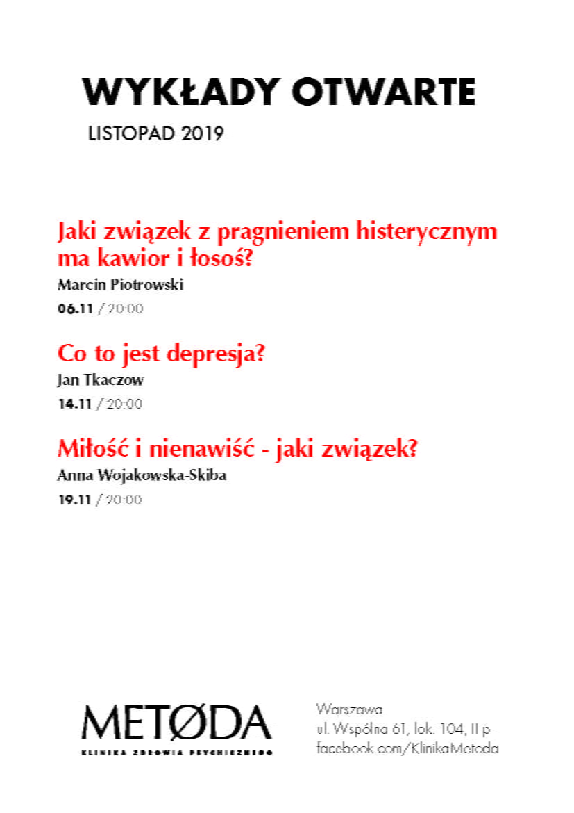 ZAPRASZAMY NA WYKŁADY OTWARTE WYGŁASZANE PRZEZ PSYCHOANALITYKÓW LACANOWSKICH PRZYJMUJĄCYCH W KLINICE METODA.